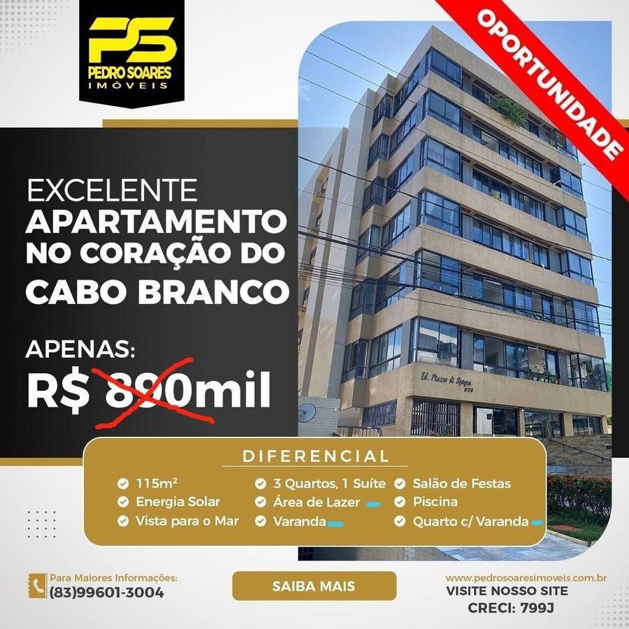 (Apartamento a venda) SUPER OPORTUNIDADE!!!!!!!!!!! Área de 115m²3 Quartos sendo 1 suíteEnergia solarQuarto com varandaVista para o marSalão de festasÁrea de lazer Piscina informações E condições deste imóvel, estão sujeitos à alteração sem aviso prévioLigue agora e garanta:Ps imóveis | (83)98785-6112 ou (83)3576-7337 cap.Krissia VitoriaCreci: 799-JFale conosco: 98785-6112 -...